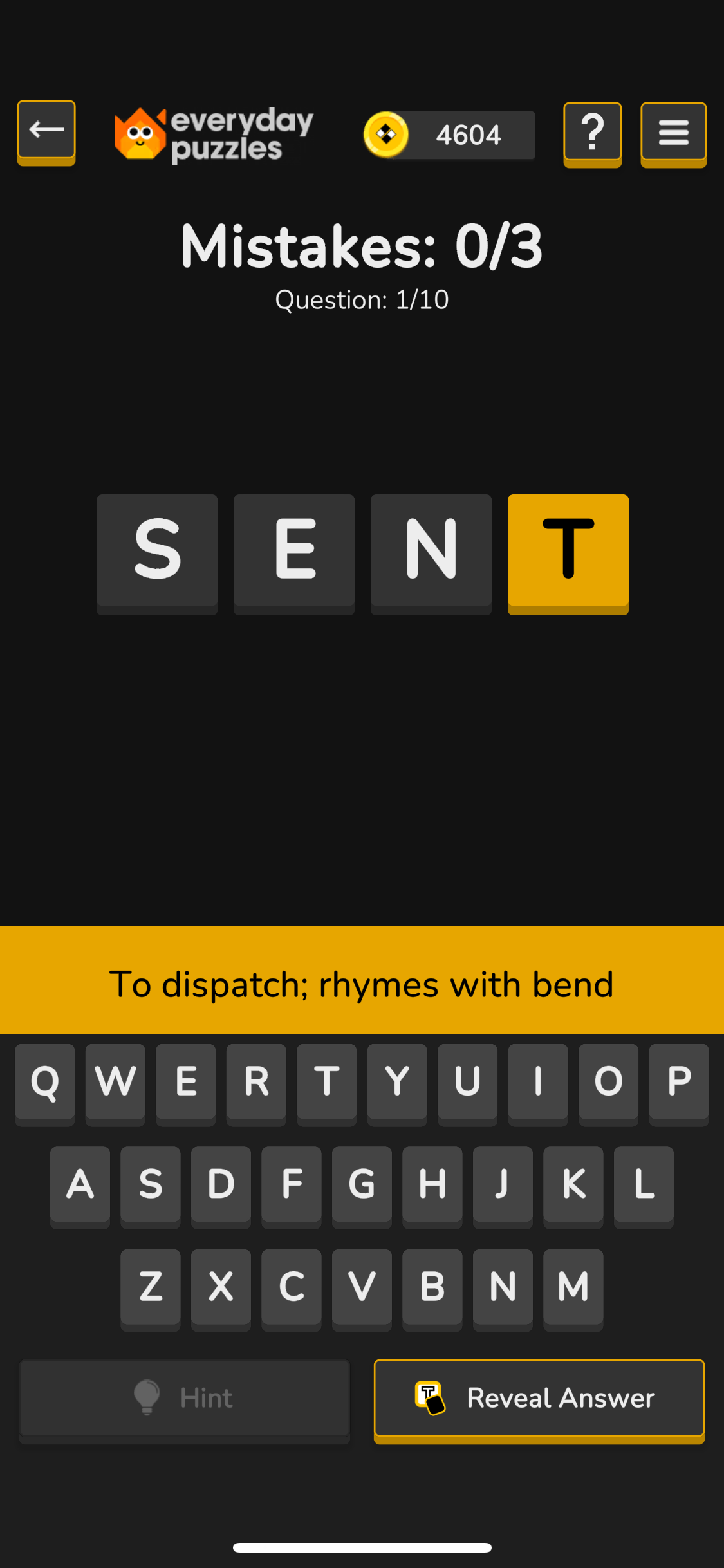 When you use Reveal Answer, the game automatically changes the letter, revealing the correct answer for the current hint.