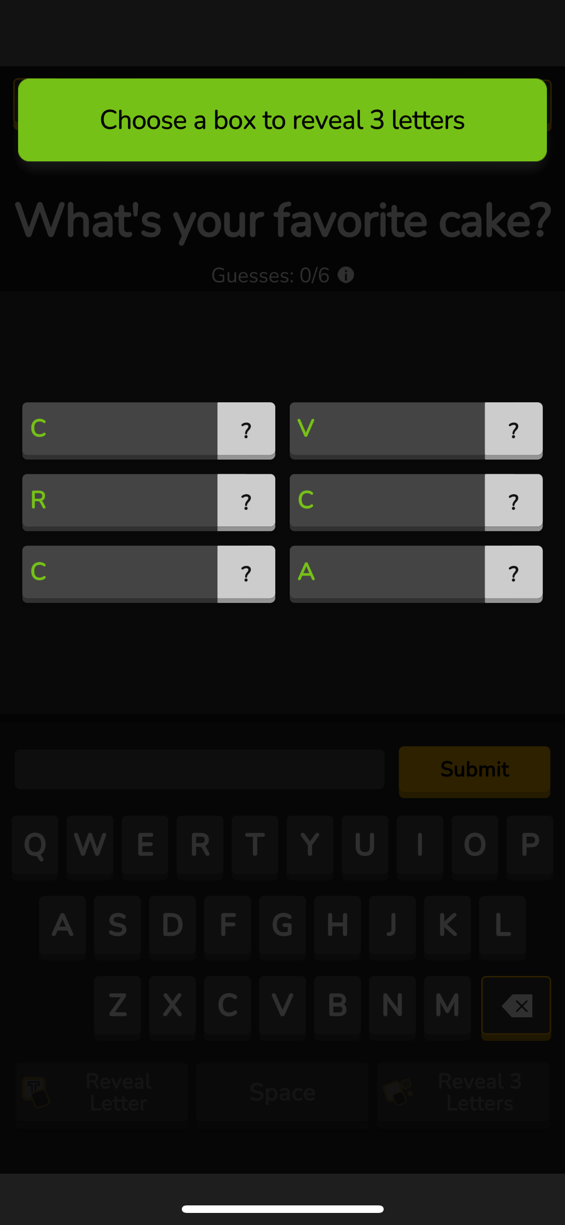 You can select a specific space to reveal the correct letter, ideal when only one letter is missing to complete the game!