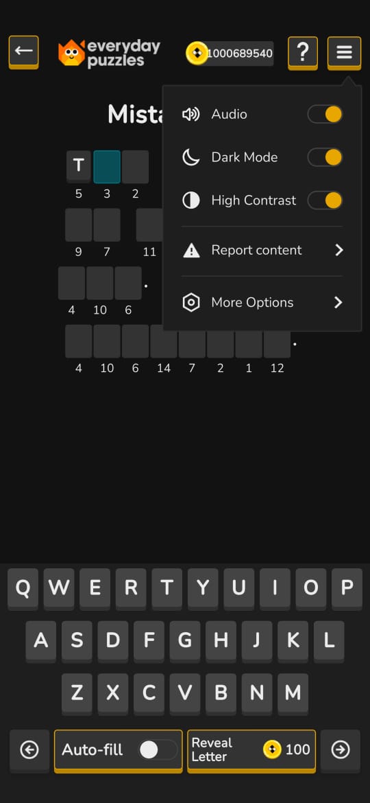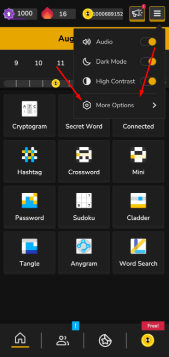 - In the top right corner of the puzzle's main screen, click the three horizontal bars icon (☰) to open the options menu.
